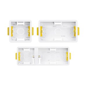 Finding the correct back box should be simple. That’s why this category covers metal back boxes, plastic back boxes, dry lining back boxes, and surface pattress boxes—all designed to work seamlessly with UK switches, sockets, and wiring accessories.