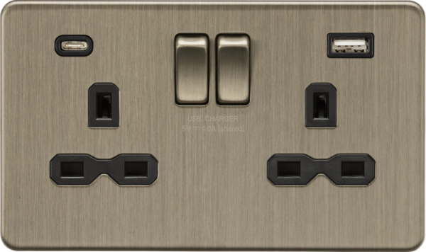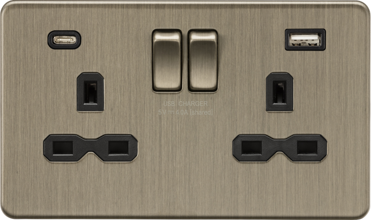 13A 2G SP Switched Socket with dual USB C+A 5V DC 4.0A [shared] – Antique Brass