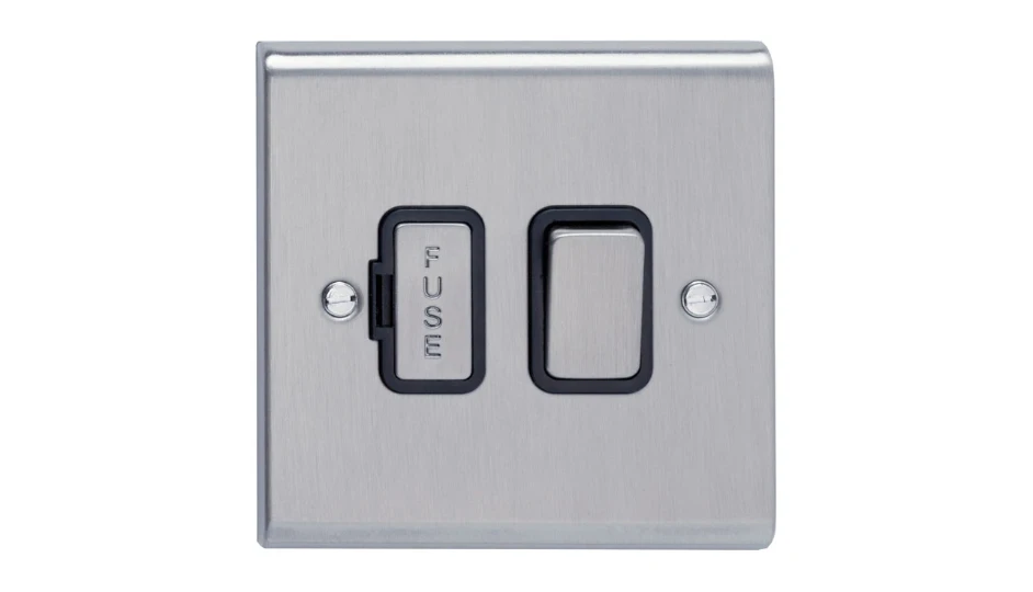13A Switched Spur Stainless Steel Black Insert
