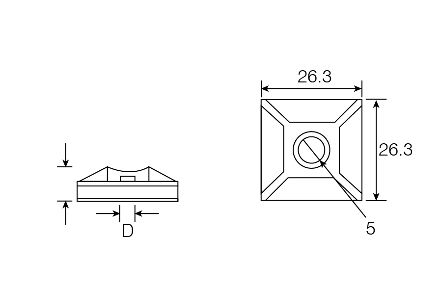 Self adhesive bases, cradles, eyelets and clamps are supplied and manufactured from A.B.S. or Nylon 6/6 material. In case of self adhesive components the adhesive pads themselves have a base synthetic rubber foundation which when applied gives a high permanent bond to most surfaces.