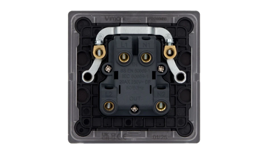 - Captive, backed out and top facing terminals with large cable lead-ins, dual earth terminals and embossed markings