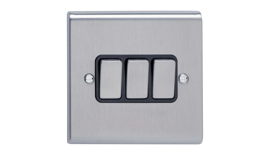 3 Gang 2 Way 10AX Plate Switch Stainless Steel Black Insert