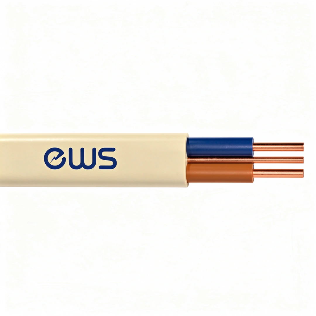 Domestic wiring cable. This cable has a bare protective conductor plus 1, 2 or 3 cores. Used for fixed installations in dry or damp premises clipped direct to the surface, on trays or in free air. Where mechanical protection is required, it can be laid in conduit or trunking.