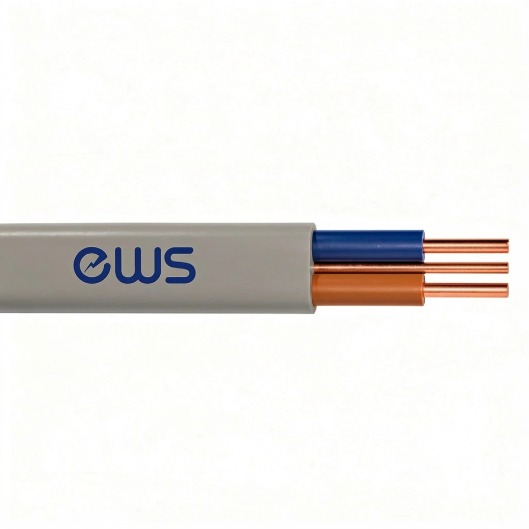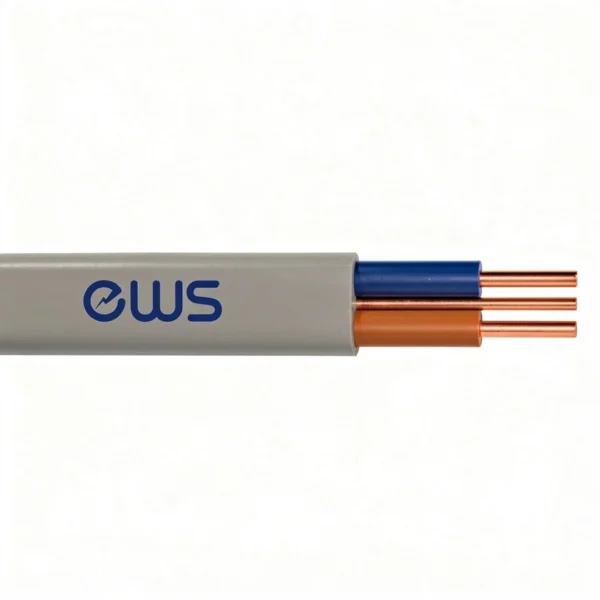 Domestic wiring cable. This cable has a bare protective conductor plus 1, 2 or 3 cores. Used for fixed installations in dry or damp premises clipped direct to the surface, on trays or in free air. Where mechanical protection is required, it can be laid in conduit or trunking.