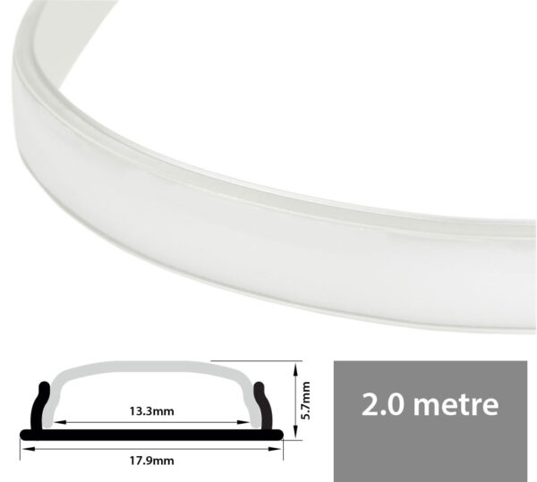 Extruded aluminium profile with arched push-fit diffuser, which is bendable to a radius as small as 50mm. Supplied with end caps and mounting clips to create a tailored LED tape installation along straight or curved edges and surfaces.
