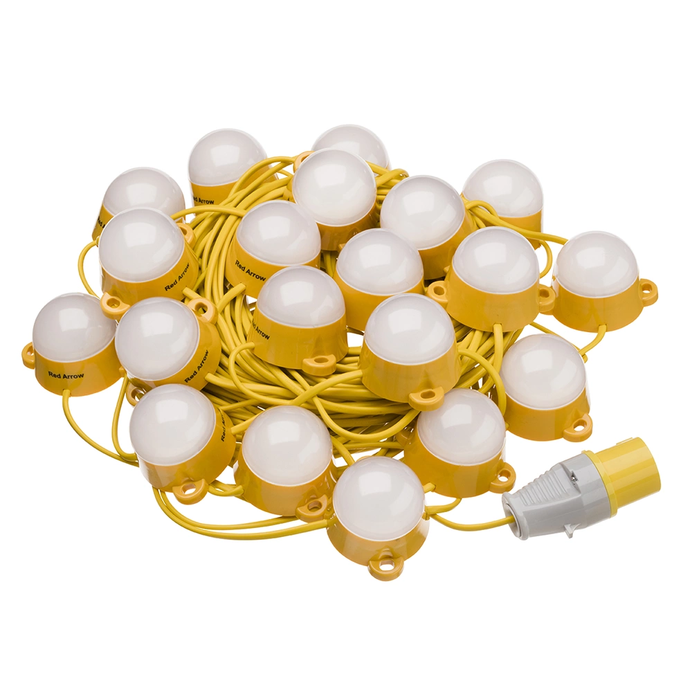 This innovative 22m, 10 LED head 110v festoon kit features unique plug and play connectors, allowing the festoon to be extended simply and quickly as required, up to a maximum of 200m in length.Featuring unique plug and play connectors, the Red Arrow FKF50100W festoon kit can be extended simply and quickly as required, up to a maximum of 200m in length.The kit has 20 LED heads and is 50m long, with a lumen output of 11000 lumens.