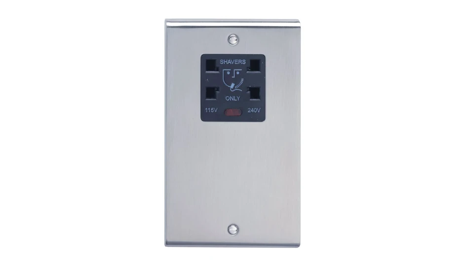 Dual Voltage Shaver Socket with Neon Stainless Steel Black Insert