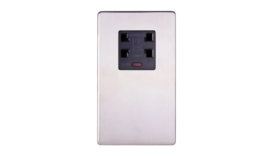 Dual Voltage Shaver Socket with Neon Stainless Steel Black Insert