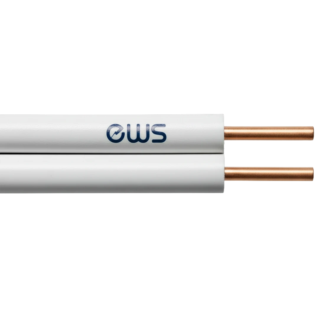 Two core bell wire with solid copper clad steel conductor and white PVC sheath.