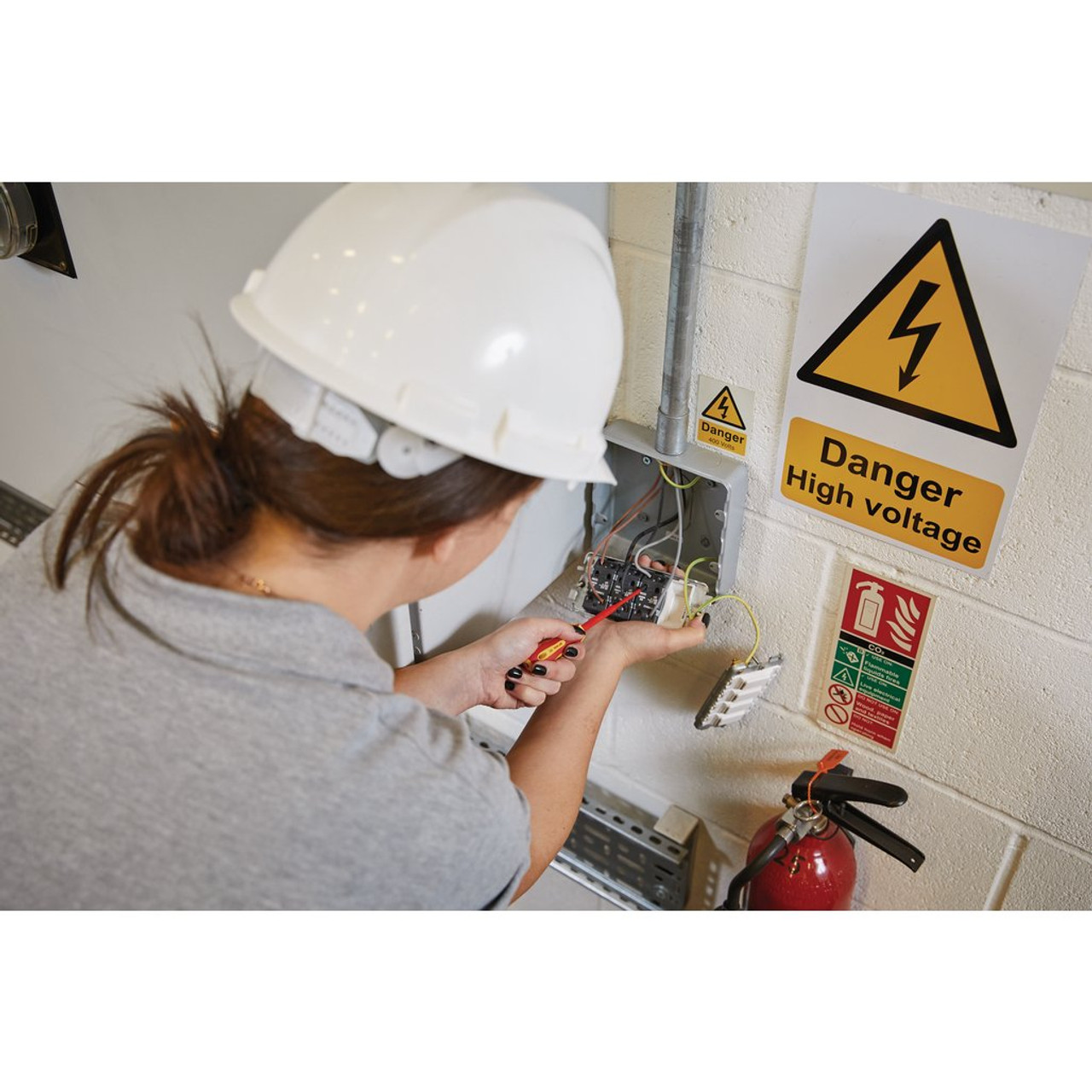 XP1000®, slimline blade with an insulated sheath the same diameter as the blade, enabling access to deep-seated screws found in terminals and switchboards. The patented dual-layer insulation ensures damage is highly visible. Specifically designed for use with electrical screws on RCB and MCBs within distribution and consumer units. Individually tested to 10,000V, suitable for working on live circuits of 1,000V AC and 1,500V DC. Ergonomic soft grip bi-material handle allows free spinning in the palm of your hand to quickly tighten screws, but also allows transfer of torque when needed. Designed with flat sides to prevent them from rolling. SCVM steel blades hardened, tempered and chemically blackened with a precision-machined tip for exact fit to prevent screw damage.