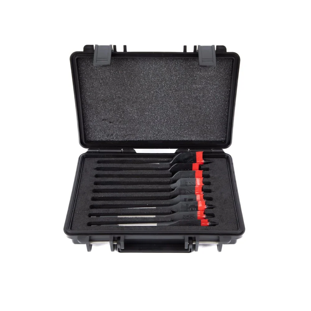 - Vorteck tip flat bits drill through wood, composites and plastics with speed and precision.